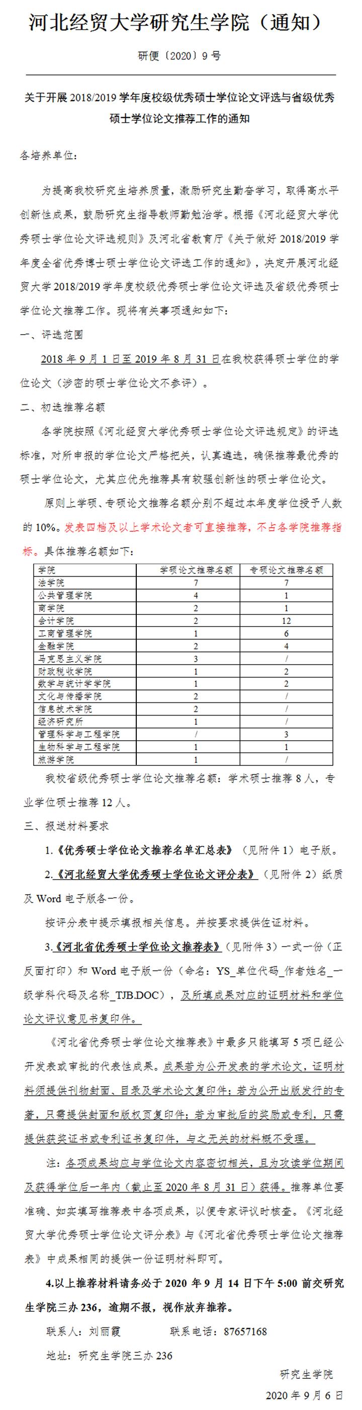 关于开展2018/2019学年度校级优秀硕士学位论文评选与省级优秀硕士学位论文推荐工作的通知