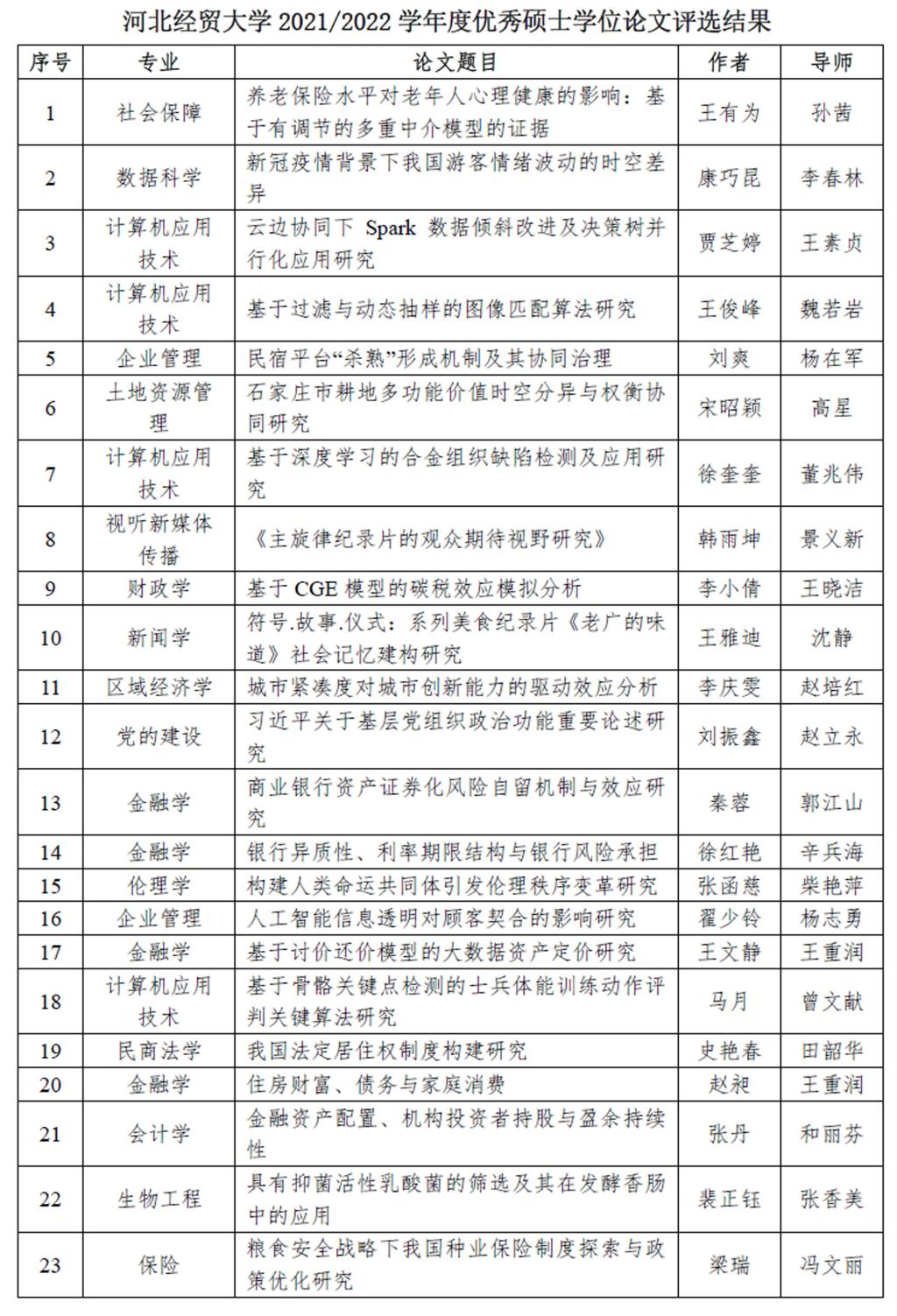 根据《304永利集团登录入口优秀硕士学位论文评选规则》,各公司产品单位共推荐参评论文70篇,经校内专家组评议后,评选出《养老保险水平对老年人心理健康的影响:基于有调节的多重中介模型的证据》等23篇论文为公司2021/2022学年度优秀硕士学位论文。