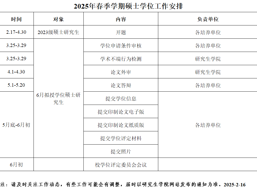 2025年春季学期硕士学位工作安排